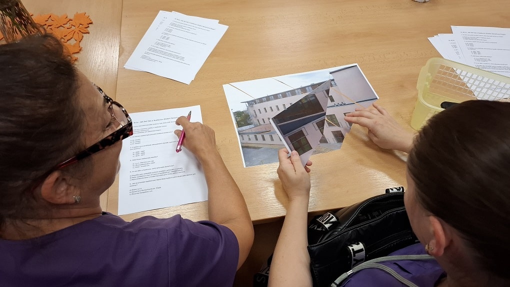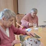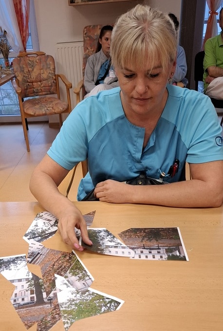 Zaměstnanci společně s panem ředitelem začali hned ráno tipovat odpovědi na otázky i skládat skládačku. V odpoledních hodinách se promítalo a vzpomínalo. Naši klienti si po zhlédnutí vzpomínkových fotografií pustili do skládání i do zábavného testu.