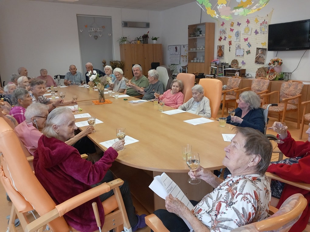 Nakonec všichni klienti společně připili na další roky domova, a popřáli mu jen radost, dobrou náladu a šikovné zaměstnance.